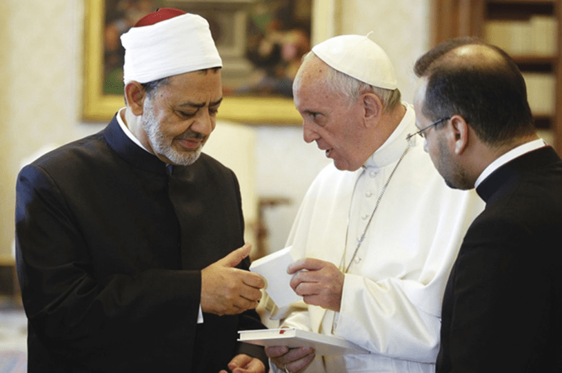 Em 2017, o Papa Francisco recebeu uma grande honraria quando Ahmed al-Tayeb, o Grande Imã da mesquita al-Azhar, no Cairo, agradeceu a ele por sua “defesa do Islã contra acusações de violência e terrorismo.”