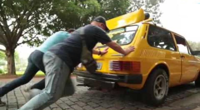 Voltaram no dia seguinte, no mesmo horário e foram comer cheeseburguer. Não deu outra: o carro não pegou. Tiveram que pedir ajuda para fazê-lo pegar “no tranco”.