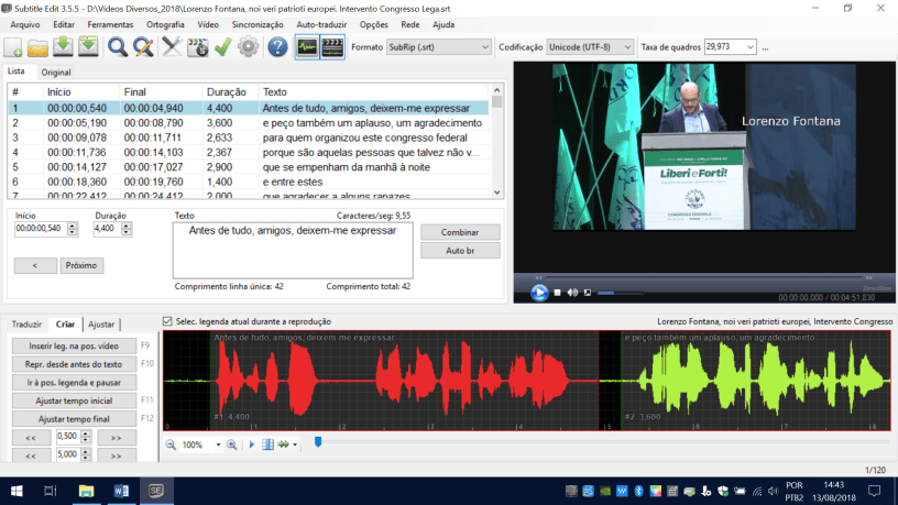 Para legendar vídeos, atualmente uso o software gratuito chamado “Subtitle Edit”, que pode ser baixado neste link. Eu uso um notebook Dell, Inspiron 15, com Windows 10. Sei que existem versões também para Linux e IOS. Também uso o Aegisub. Ambos têm tutoriais em português.