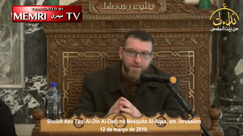 Discurso do Sheikh Abu Taqi Al-Din Al-Dari, na Mesquita Al-Aqsa, em Jerusalém, em 12 de março de 2019.