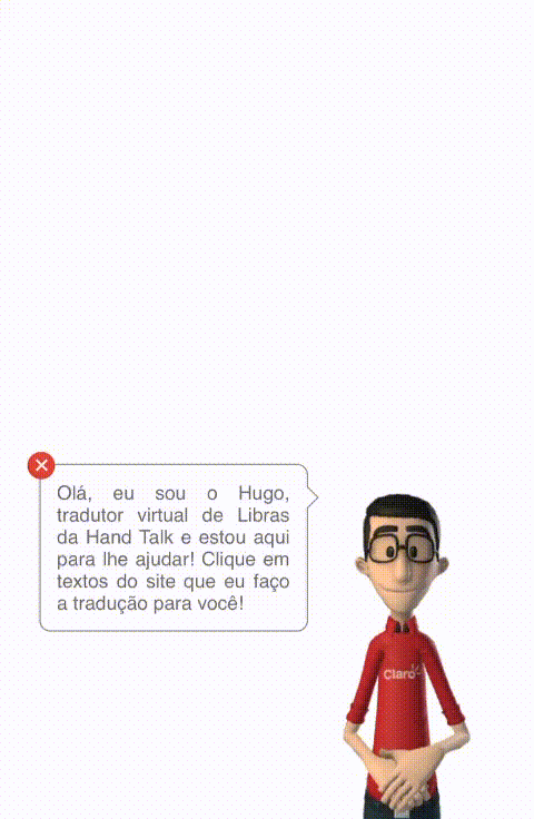 Voltei a consultar o aplicativo, mas continuava sem a designação do técnico, mas em compensação encontrei o “Hugo”, o intérprete de Libras, que pode ajudar-me a transformar textos para a linguagem de sinais manuais.