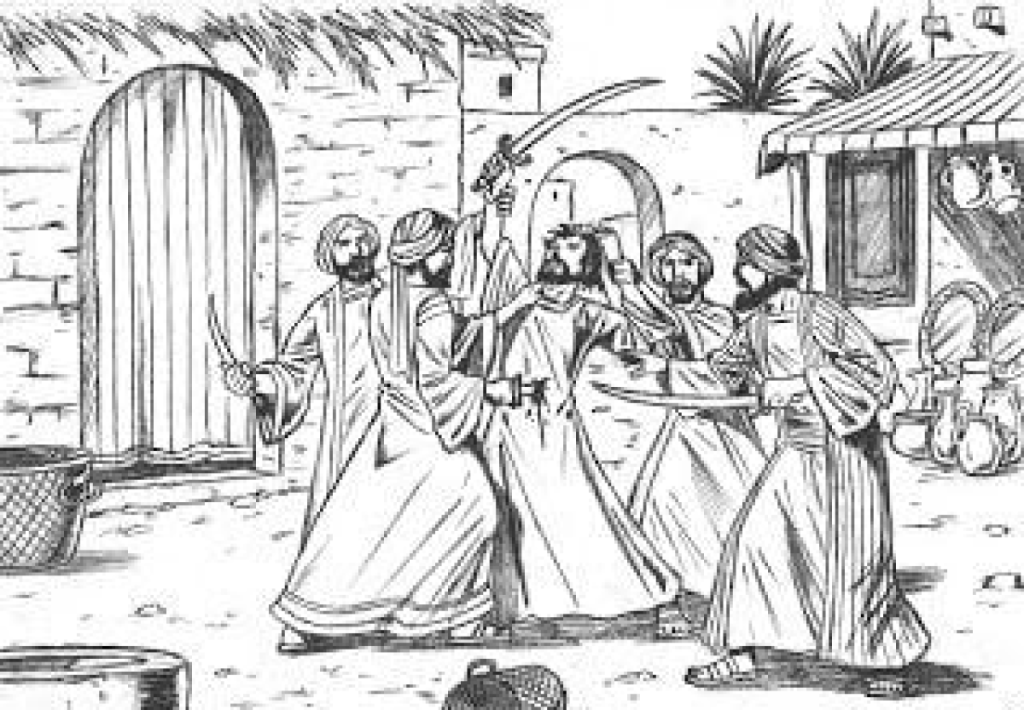 Bin Maslama se aproximou da pessoa que Maomé designou para a morte e alegou estar terrivelmente desiludido pelo “profeta”. Dessa forma, ele foi capaz de adquirir a confiança da pessoa e ter acesso ao seu círculo íntimo. Maslama perguntou a Ka’b se ele podia sentir o perfume em seu cabelo depois que a “amizade” tinha sido criada, um ato que só poderia ocorrer entre amigos próximos. Ka’b permite isso, já que confia em seu “amigo”, mas ele é rapidamente agarrado e morto! “Guerra é enganação” de fato.