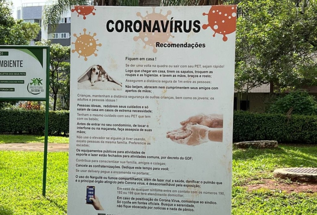 A Prefeitura da minha quadra em Brasília logo espalhou várias placas com alertas contra a peste chinesa. A síndica do meu prédio publicou um aviso ameaçando de prisão de 6 meses a 2 anos para quem não obedecesse a legislação sanitária.