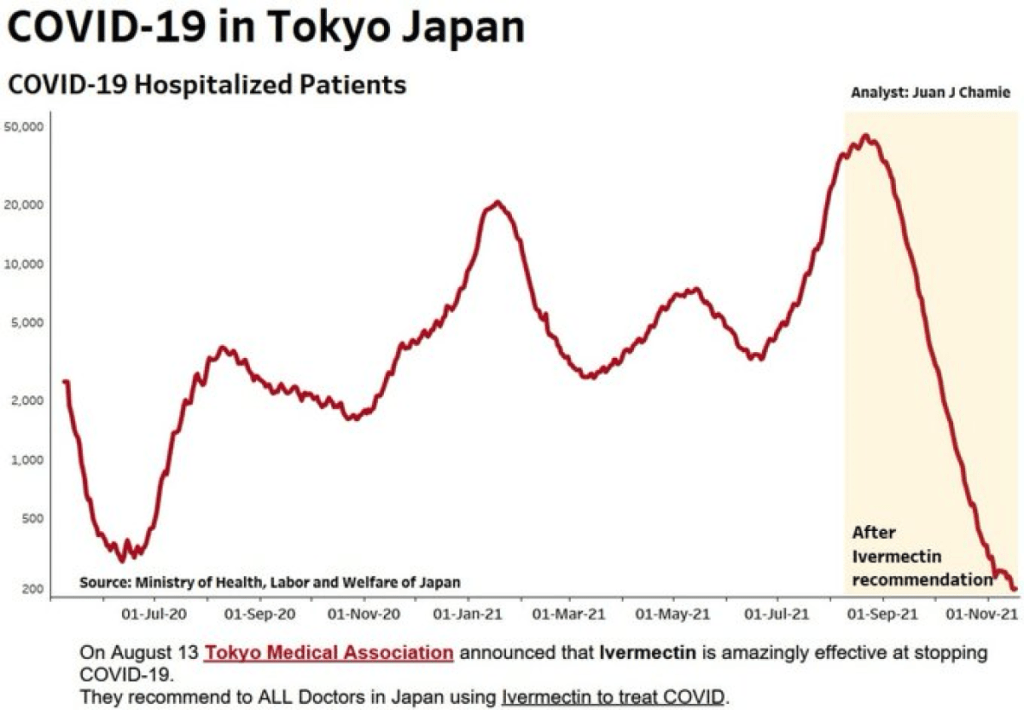 Acabei de ler a notícia que a cidade de Tóquio reduziu drasticamente as internações por Covid depois de iniciar o tratamento com a …. Ivermectina.