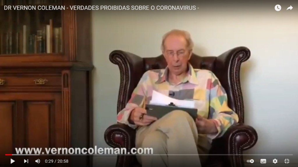 Este texto é a tradução do artigo do Dr. Vernon Coleman, que pode ser lido no original em inglês neste link. Outros artigos do Dr. Vernon Coleman podem ser lidos no site dele: https://vernoncoleman.org/. Tem um vídeo dele no Youtube chamado “Verdades Proibidas Sobre o Coronavírus”, legendado, que pode ser assistido neste link.