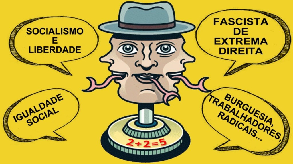 Exemplo: defender a igualdade social com a distribuição de bens entre todos de forma igualitária (justiça social), mas acumular fortunas e propriedades sem dividir com os “cumpanhêro”.