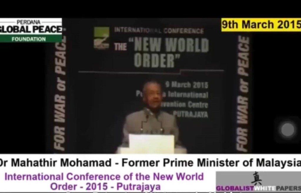 O Dr. Mahathir Mohamad, falou isso em 2015, na conferência internacional chamada “A Nova Ordem Mundial, UMA RECEITA PARA GUERRA ou PAZ”, organizada pela PERDANA GLOBAL PEACE FOUNDATION, da qual ele é o principal dirigente.