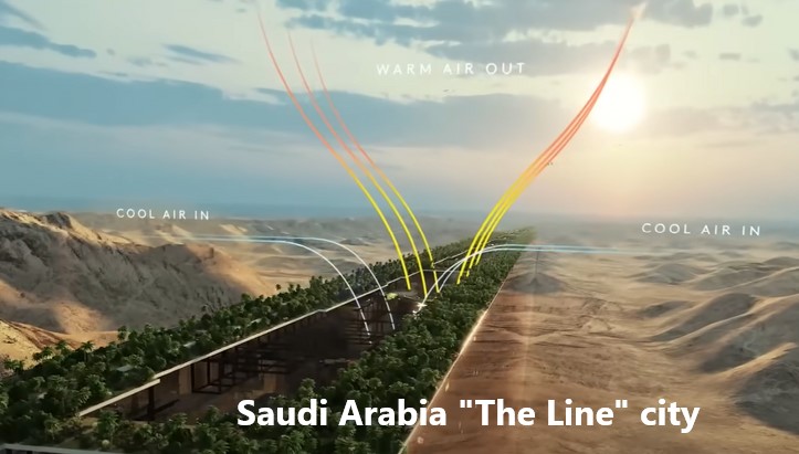 Veja na Arábia Saudita, por exemplo, eles estão construindo a “Neom City“. Eles a chamam de “A Linha”. Isso é uma estrutura no meio do deserto, de 200 quilômetros de comprimento, 200 metros de largura e 500 metros de altura e vai poder abrigar 9 milhões de pessoas.