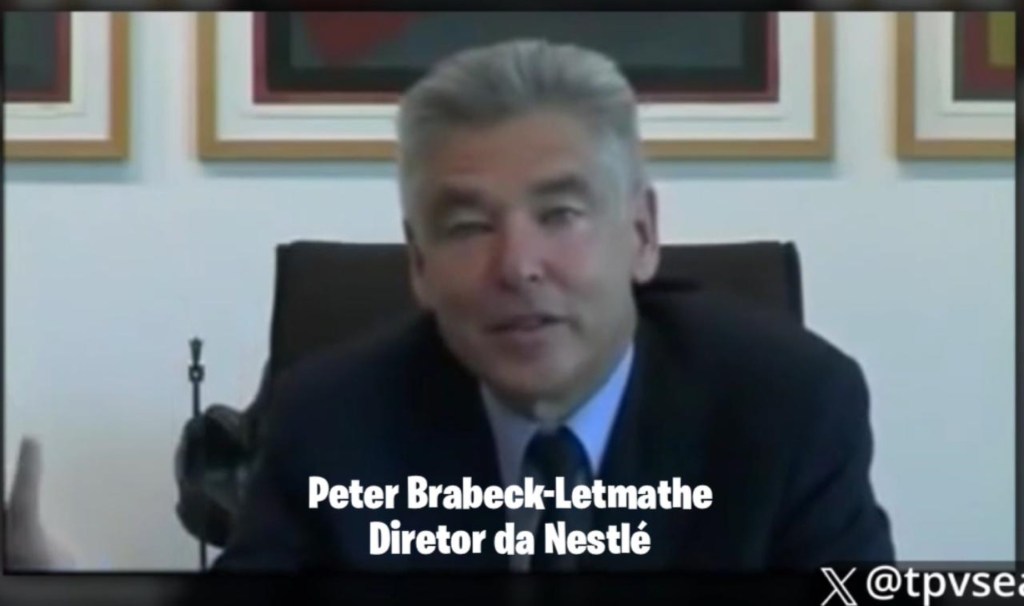 O diretor da Nestlé, Peter Brabeck-Letmathe, admitiu isso durante uma entrevista perturbadora, na qual ele inadvertidamente expôs a mentalidade psicopática da elite.