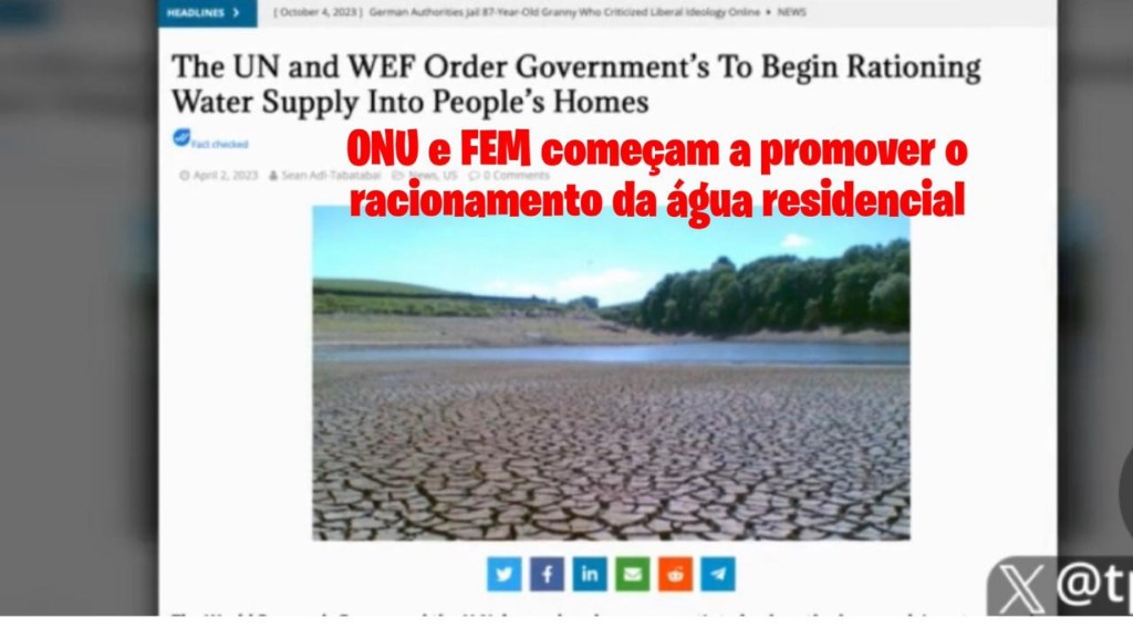 O Fórum Econômico Mundial e a ONU ordenaram que os governos do mundo se preparem para racionar o abastecimento de água das pessoas, como parte de sua grande agenda de reinicialização para a humanidade.