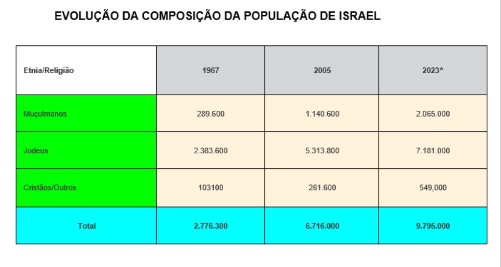 Evolução da população de Judeus e Muçulmanos em Israel e “Palestina” – Luigi Benesilvi