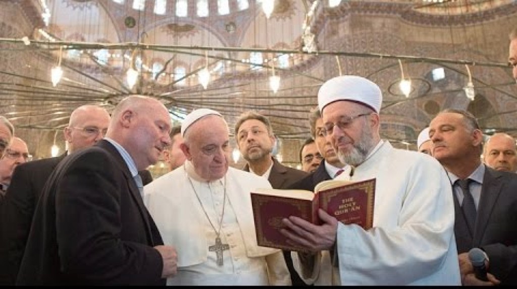 Os cristãos de todo o mundo devem visitar as mesquitas e louvar a Allah, de acordo com o Papa Francisco, que deu o exemplo em sua visita a Istambul, ao entrar na Mesquita Azul, tirar os sapatos, ficar de frente para Mecca e louvar o deus muçulmano.