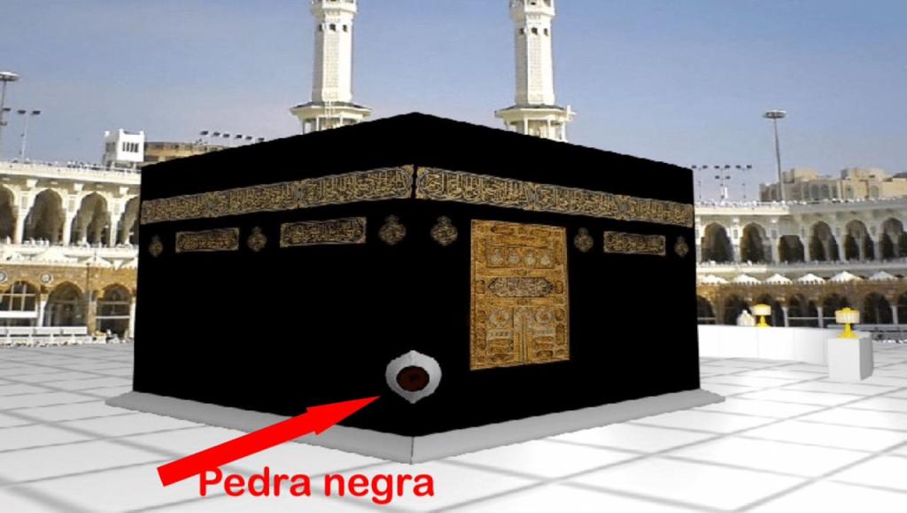 A Pedra Negra se encontra numa construção chamada “Caaba”, na mesquita de “Masjid al-Haram”, em Mecca, para onde se voltam os muçulmanos em suas preces diárias e para onde fazem suas peregrinações.