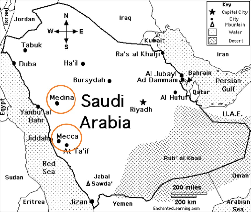 Quando o Profeta Maomé disse que o anjo Gabriel lhe revelou que ele seria o último Profeta, no início dos anos de 600, ele pregava em sua cidade natal de Mecca. Tentava recrutar amigos e seguidores, para expandir sua religião. Tentou durante 12 anos e falhou. Em 12 anos só havia conseguido recrutar seus familiares e amigos mais próximos.