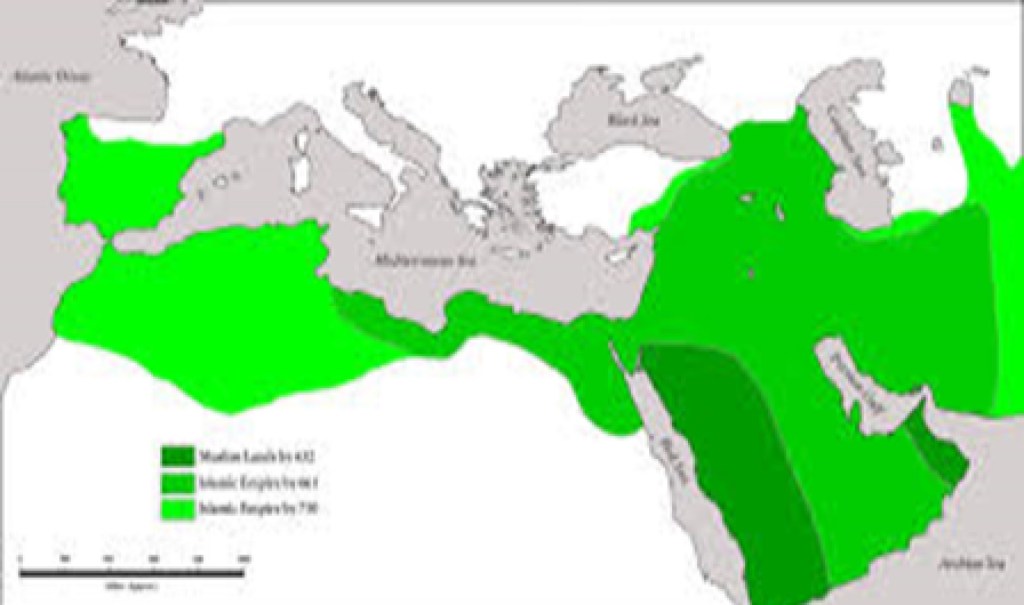 Nos anos de 600 o Islã dominava uma área da terra maior do que o Império Romano dominava no seu apogeu.