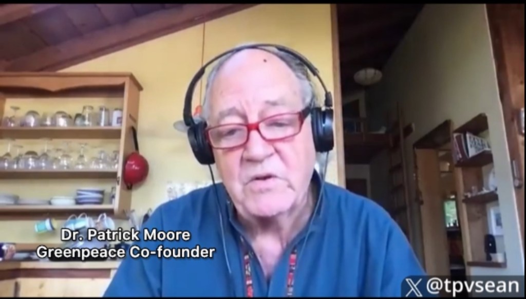DR. PATRICK MOORE: E eles estão conseguindo fazer alguma coisa. Agora eles estão entrando na agricultura e ameaçando cortar o fornecimento de alimentos porque os alimentos estão causando o “aquecimento global” e, oh, isso não é belo?