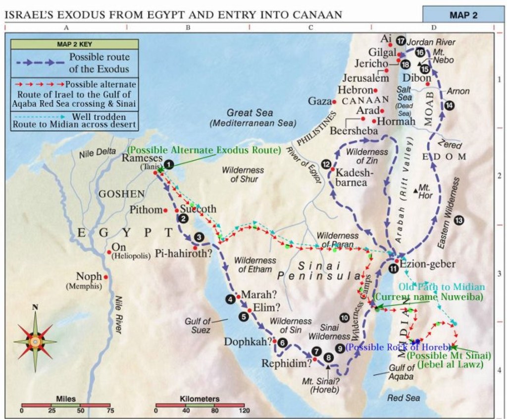 Então, comecei a pesquisar, lendo artigos e assistindo vídeos sobre o tema e acabei encontrando várias versões sobre como foi a viagem dos hebreus do Egito até a Terra prometida.