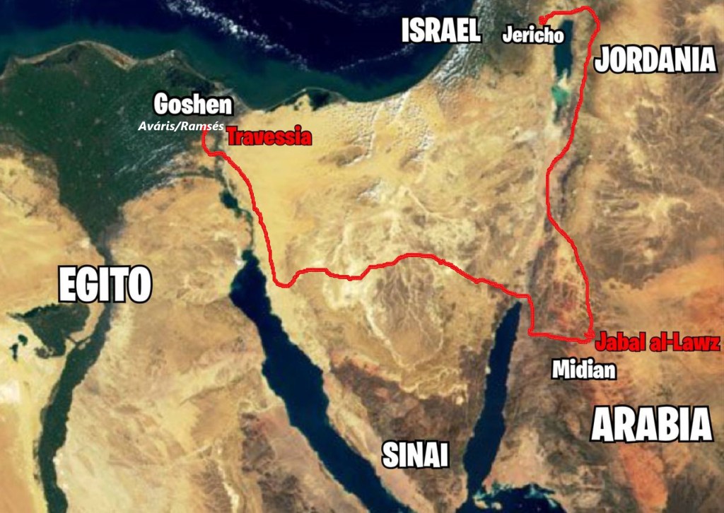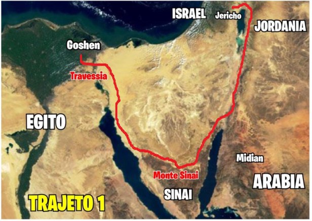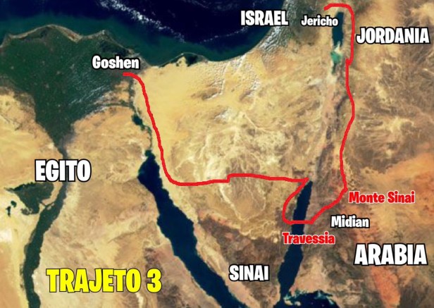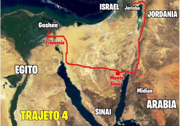 Mas, pelo que li, ouvi e assisti e depois de tudo dito e feito, me pareceu ser mais razoável a travessia próxima ao Egito e o monte Hashem el-Tarif, como Monte Sinai, o que corresponde ao trajeto número 4 do artigo de 28/12/2023, abaixo.