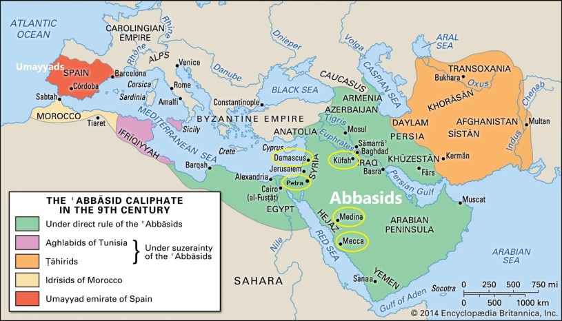 No ano 661 a sede do império do Islã passou para Damasco, no chamado período conservador “Umayyad”, derrotado pelos reformistas muçulmanos “Abbasids”, de Kufa, no Iraque, que dominaram o Islã a partir de 750 depois de Cristo, até o século 13.