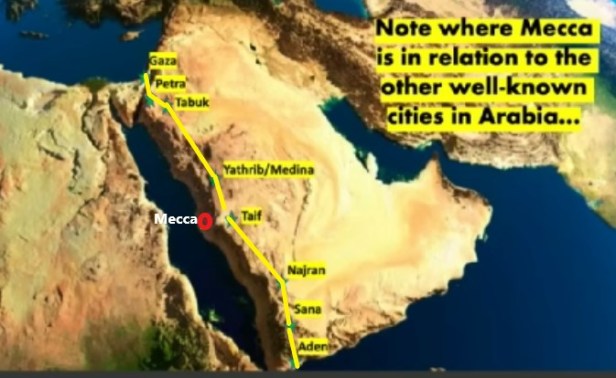 Também mostra que Mecca sequer estava no trajeto das caravanas de mercadores, que vinham do Iêmen e subiam pelo planalto arábico em direção ao mar Mediterrâneo.