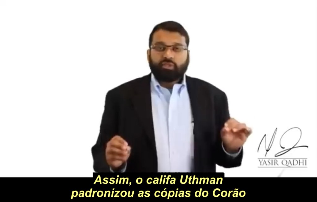 “Assim, o califa Uthman padronizou as cópias do Corão e portanto, desde sua época até a nossa, nunca houve 2 cópias do Corão que fossem diferentes, nem mesmo em uma letra ou palavra”, afirma categoricamente Yasir, quando está falando para iniciantes.