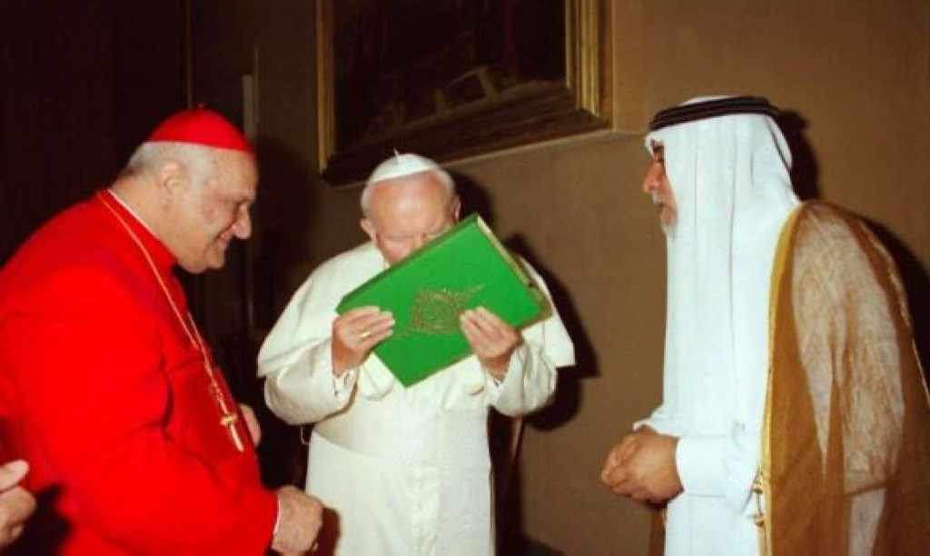 Outro evento que certamente foi interpretado pelos muçulmanos como forma de submissão, foi o ato praticando pelo agora São João Paulo II, ao beijar o Corão de forma excessivamente devota.