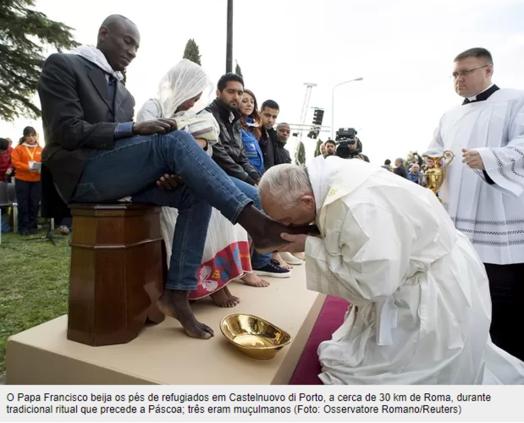 Ao ouvir as palavras do Mansur, lembrei de ter visto uma foto do Papa Francisco durante cerimônia do “lava-pés”, realizada na quinta-feira santa, lavando os pés de um grupo de homens, entre os quais três muçulmanos.