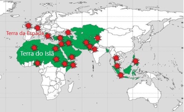 Para os muçulmanos, o mundo é dividido em apenas duas partes: a parte que o islã já governa, chamada Dar alisam (Terra do Islã) e a parte que o Islã ainda não governa, chamada de Dar al-Harb (Terra da Guerra). Simples assim.