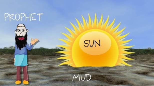 O sol não se põe numa poça lamacenta. Esse é um mito antigo, não um milagre. Esses não são milagres científicos. São erros científicos.