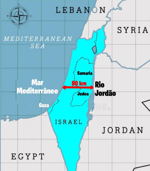 Na época atual, quando os muçulmanos de Gaza cantam “From the river to the sea, palestina will be free” (Do rio até o mar, a palestina será livre), na verdade estão dizendo que querem destruir Israel, pois o país está exatamente entre o rio Jordão e o mar Mediterrâneo.