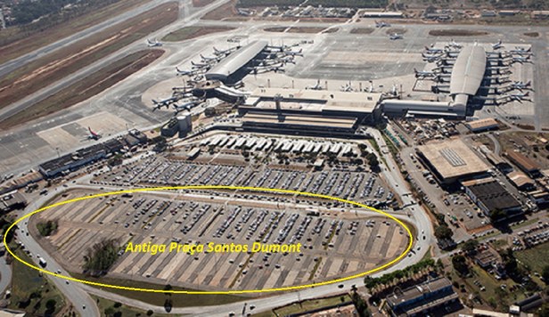 O aeroporto de Brasília tem um grande estacionamento ao ar livre, para cuja ampliação, em 2013, foi destruída uma praça dedicada ao nosso pioneiro da aviação, a Praça Santos Dumont.