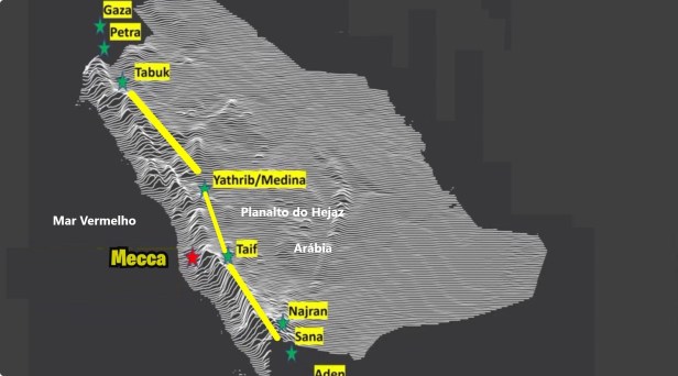 As indicações levam a crer que Mecca foi construída em meados do século sétimo, por seguidores de um profeta, que mais tarde foi conhecido como Maomé, em fuga de uma fracassada guerra civil contra o soberano de Damasco, capital de Síria, levando com eles para Mecca, a “pedra negra” e os rituais que praticavam em Petra.