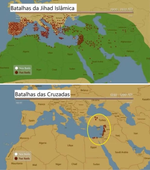 Nesse período, os maometanos conquistaram 70% de todas as terras cristãs do Oriente Médio, norte da África e partes da Espanha, Portugal e França.