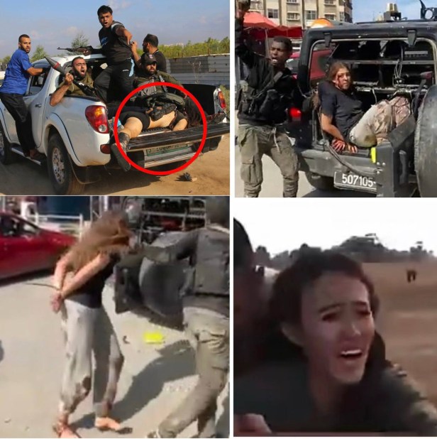 Tem um vídeo mostrando os terroristas retornando a Gaza com o corpo de uma mulher israelense e a multidão estava frenética e ululando de prazer, com algumas mulheres batendo no corpo dela com pedações de madeira.