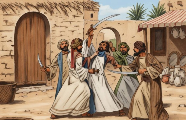 Ka’b ficou convencido de que ele já não era seguidor de Maomé. Depois de se comportar como seu amigo por algum tempo, Ibn Maslama acabou aparecendo com outros muçulmanos secretos. Então, enquanto a guarda do confiante Ka’b estava abaixada, eles o atacaram e o massacraram, levando cabeça dele a Maomé ao som de gritos triunfantes de Allahu Akbar.”
