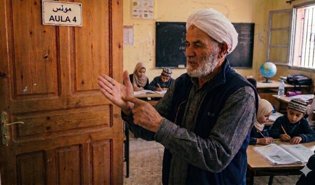 Agora, aqui está o imã Ahmed ibn Hanbal, fundador de uma das 4 escolas de jurisprudência, que é praticada na Arábia Saudita. Certa vez, enquanto ele dava aula, alguém bateu à porta e essa pessoa que batia perguntou por um de seus alunos. Então, esse grande imã, Ahmed Ibn Hanbal, disse de trás da porta: “Ele não está aqui”. O que ele estaria fazendo aqui?” E o homem foi embora.