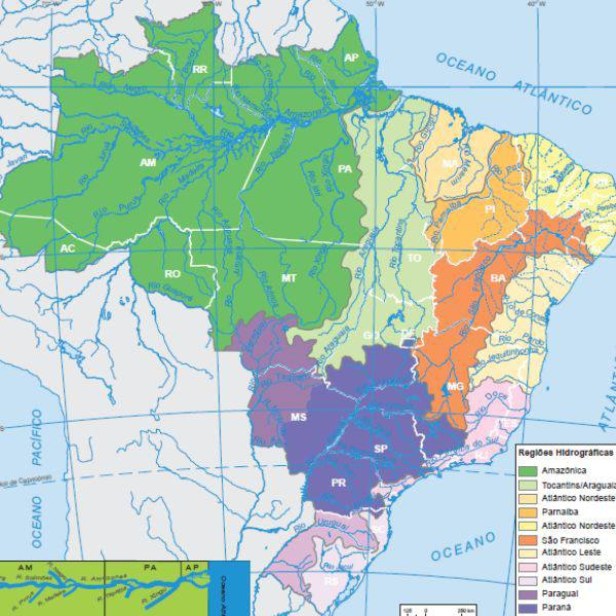 O Brasil detém mais de 10% da água potável natural renovável do mundo. É o principal possuidor da bacia amazônica, que transporta cerca de 20% de toda a água dos rios que flui na superfície da Terra. O Aquífero Guarani, uma das maiores reservas subterrâneas de água potável do planeta, abrange a região Sul e Centro-Oeste do Brasil.
