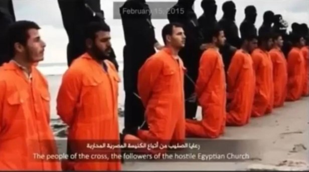 O vídeo foi divulgado em fevereiro de 2015, mostrando 21 cristãos, 20 dos quais eram cristãos coptas (minha ascendência é coopta do Egito) e um era de Gana, um homem africano. Eles estão com macacões laranja e o ISIS atrás deles. Simplesmente porque se recusaram a renegar o cristianismo. Temos essa história deles. Eles ficaram atrás deles e deceparam as cabeças deles.
